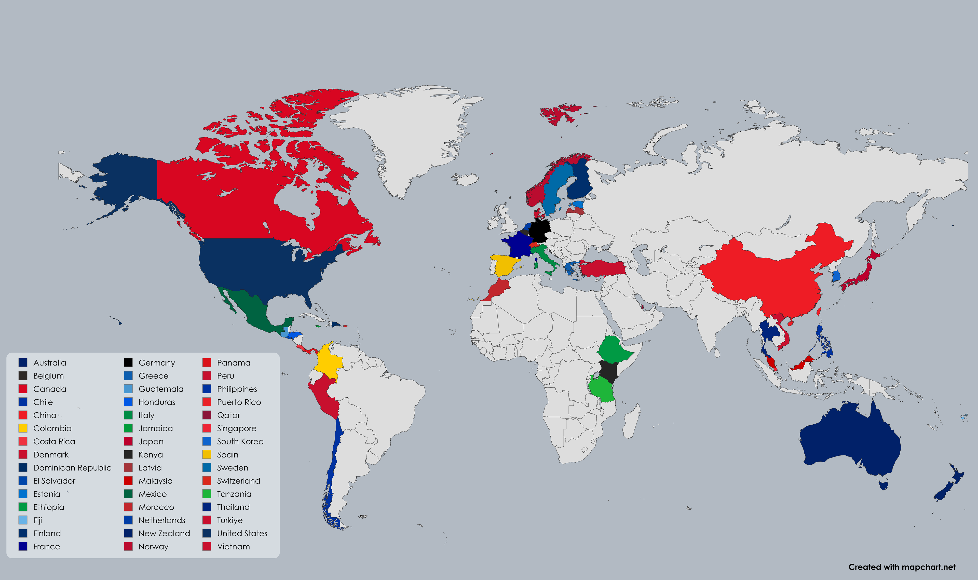 Regions and Countries not highlighted on the map: Saint Martin, U.S. Virgin Islands.